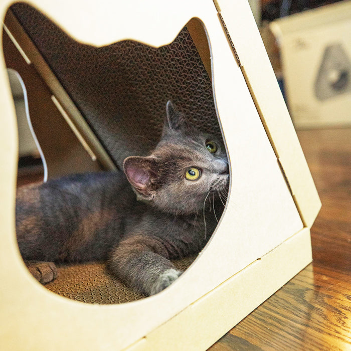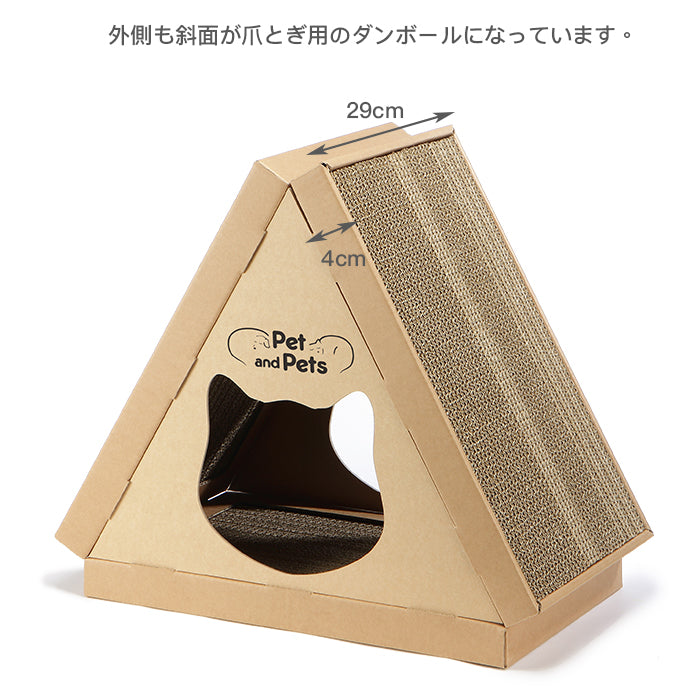 ティッピーピークは段ボール製の爪とぎ付きキャットハウスです。