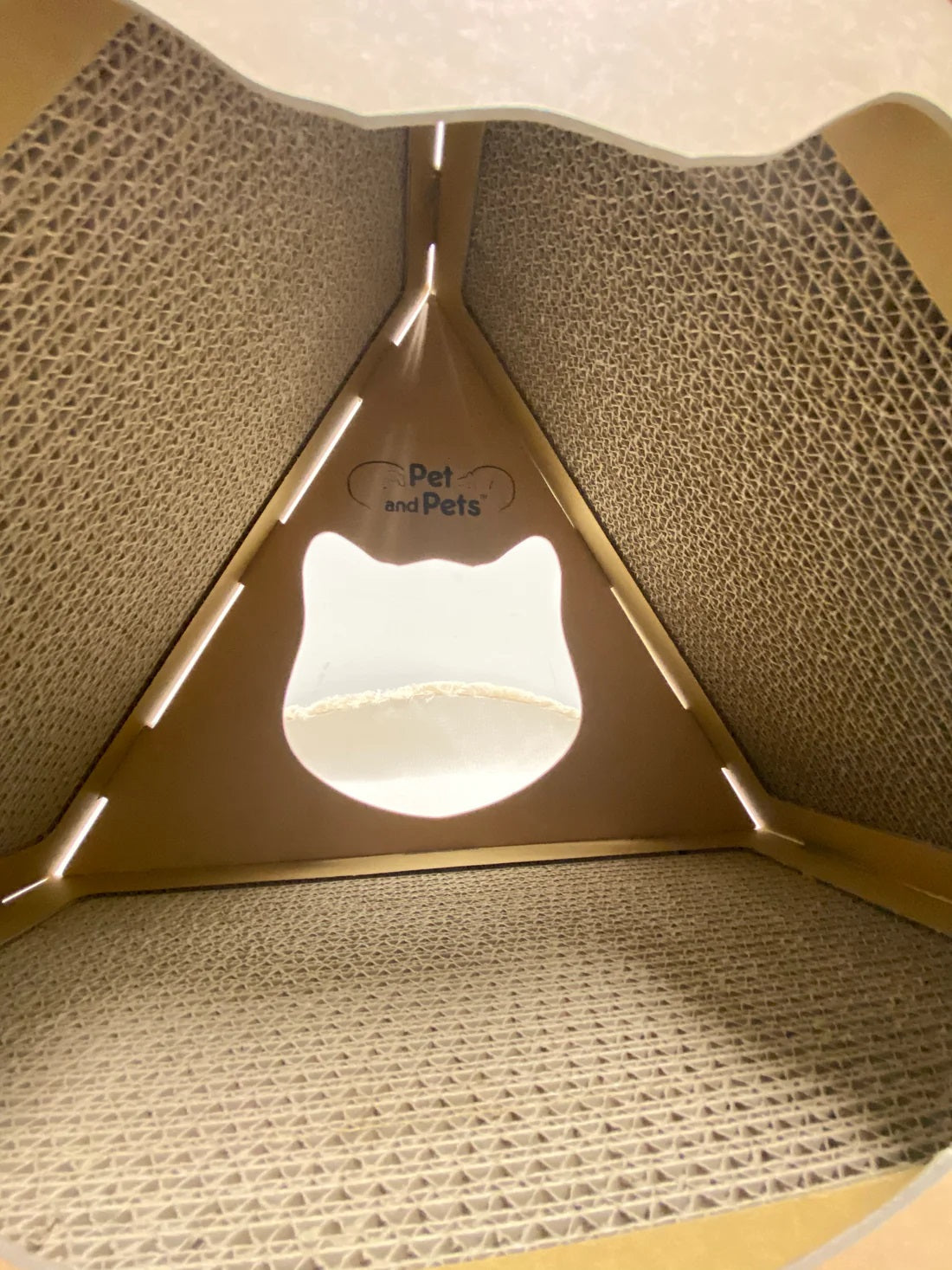 室内は3面すべてが爪とぎ用のダンボールとなっているので、どこでも自由に爪とぎができます。