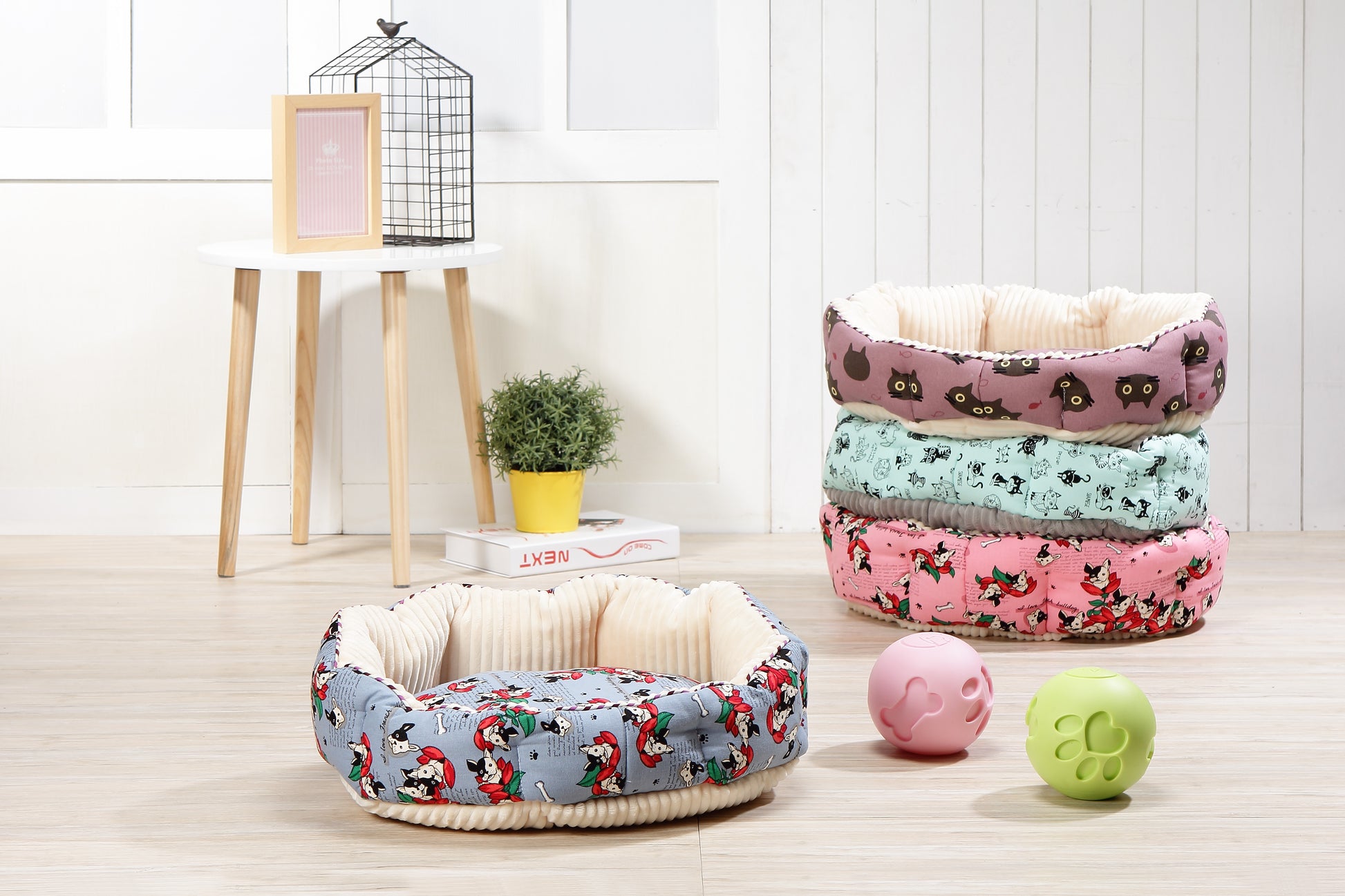 ●浅めのラウンドマットと深い丸型ベッドのリバーシブル仕様となっています。