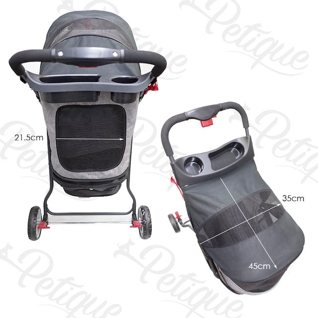 Petiqueのペットカートは、ベビーカーのフレームを応用したものになります。(製造の都合上、一部分変更して製品化しております)