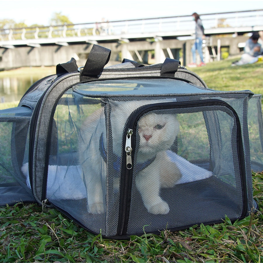 また伸縮可能な4つのメッシュ面により、ペットは自由に動き回ることができ、視界が広がり、風通しが良くなります。